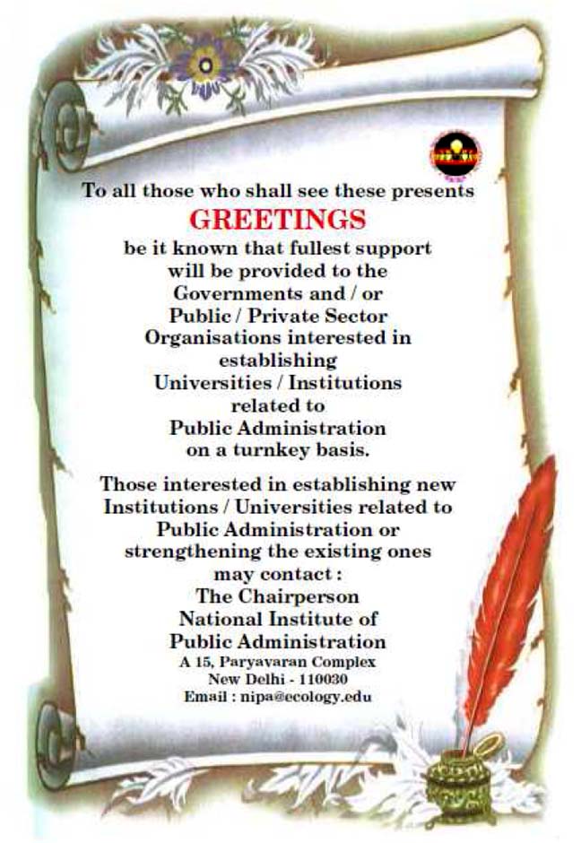 The Chairman National Institute of Public Administration (NIPA) A 15, Paryavaran Complex New Delhi – 110030 Toll Free Number - 18005714545